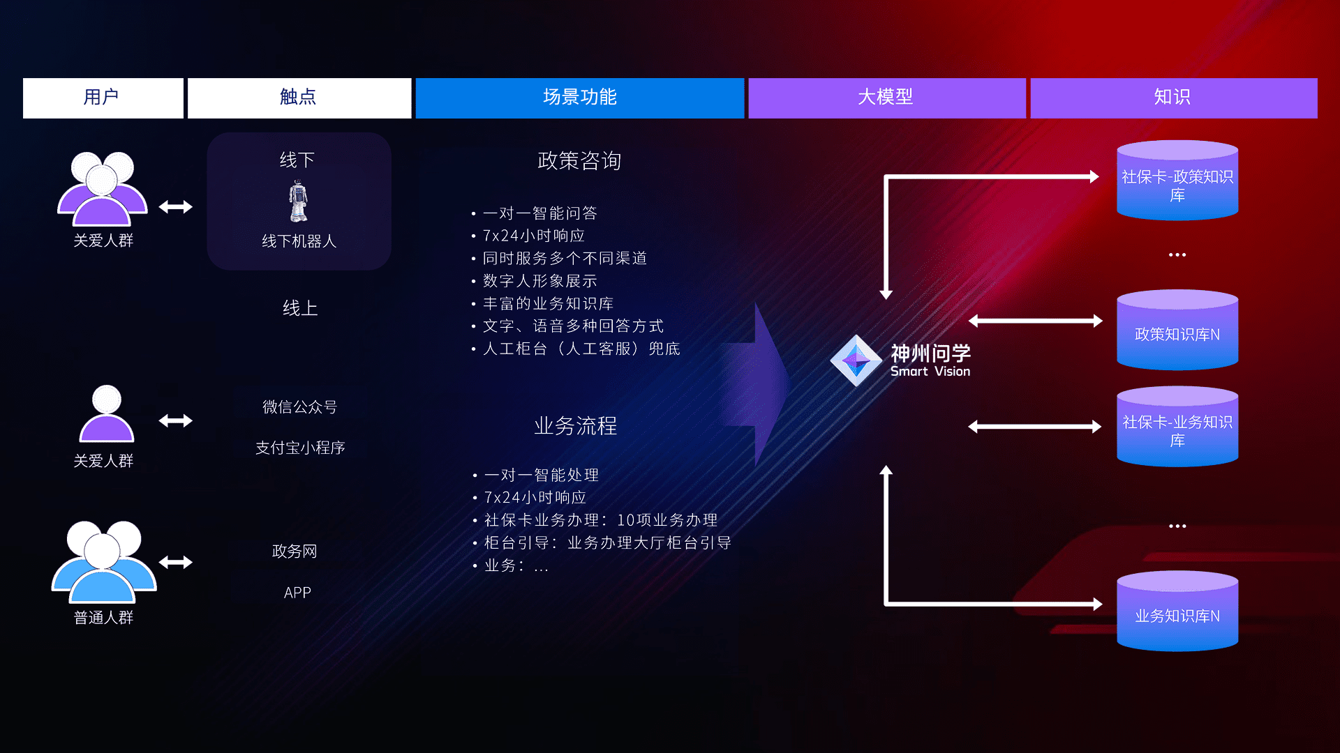 • 线上线下全覆盖:线上提供微信公众号、、、支付宝小程序、、、、政务网、、、、app多种渠道,,,,与线下机器人形成完整服务体系。。。